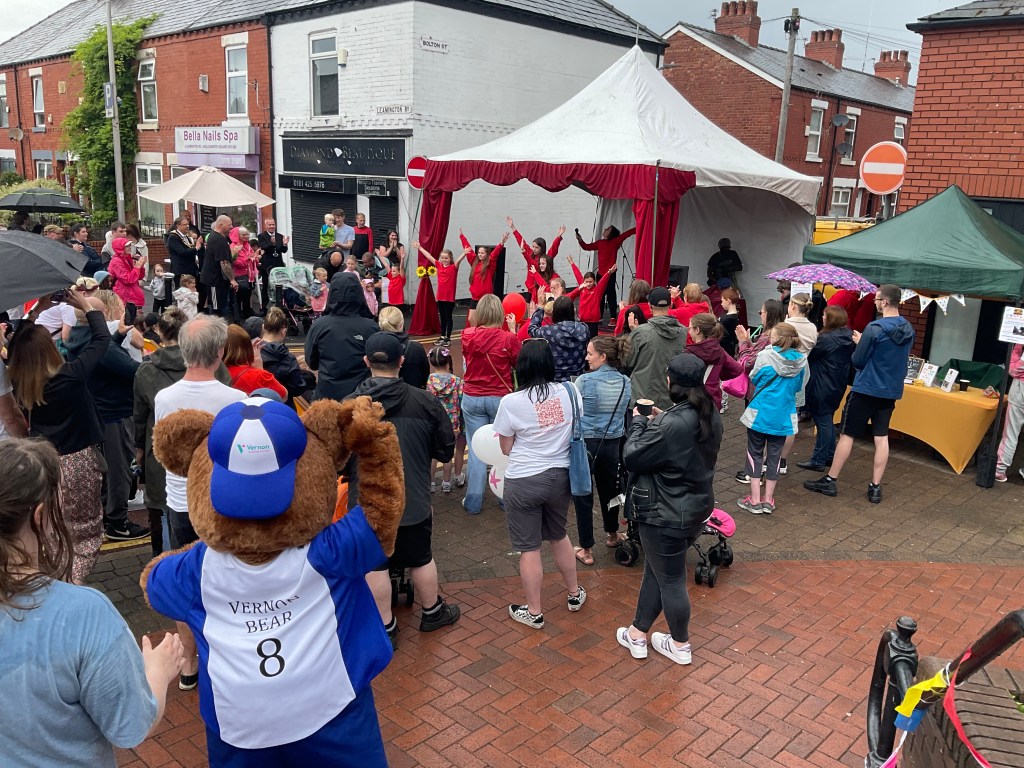 The event, in Houldsworth Square in the centre of Reddish, included a stage with entertainment all day, from local talented performance groups and live music from Des Songsmith, who will compèred the stage too.
